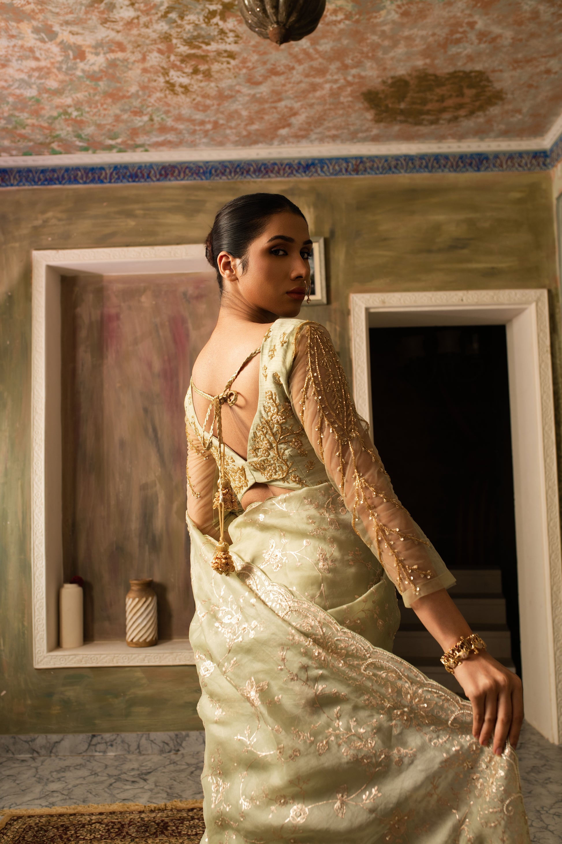 Our pre-draped sarees are designed to fit like a skirt with a side zip, making them effortless to wear.